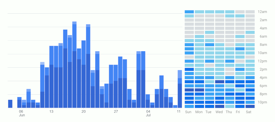 Many predicted Italy to win, but nobody expected that Switzerland would beat France in the Round of 16 nor that Czech Republic would kick The Netherlands out – but with 57% of the participants from The Netherlands that might not be such a big surprise. The graphs below show how active our participants were in the last couple of weeks. The enthusiasm declined a bit after the group stage, so let's hope your country makes it to the finals next year.
